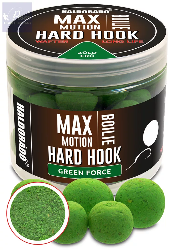 A MAX MOTION Boilie Hard Hook Wafter olyan könnyített, speciális eljárással készült kemény csali, amely egyértelműen azt a célt szolgálja, hogy hosszabb ideig is ellenálljon a zavaró fehérhalak, vagy akár a törpeharcsák támadásának. Keménységét hosszú ideig megőrzi, miközben aromakibocsátása lendületes, így biztosítva figyelemfelkeltő tulajdonságát.
